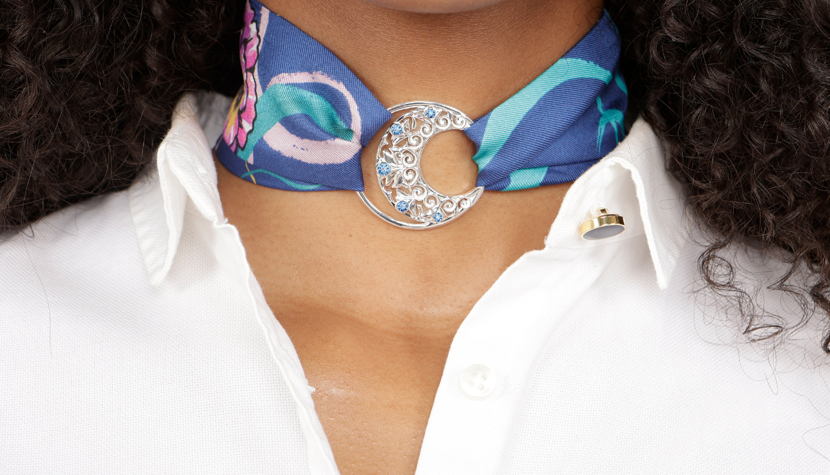 Usato con un foulard, una catena o un nastro, non è un semplice passaggio: è un punto di orientamento.